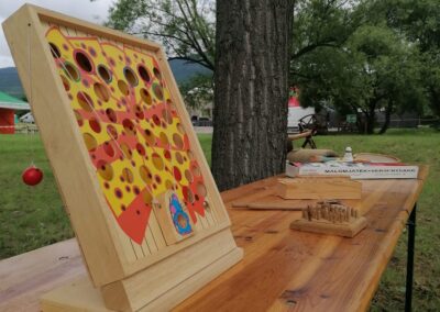 A játékaink természetes anyagokból saját kezűleg készülnek. Nem kell hozzá más, csak némi ötletelés, sok-sok fa, és két ügyes kéz. Az elmúlt években az ország nyolc megyéjében számtalan rendezvényen vettünk részt sikeresen. Ha Ön is szeretné kipróbálni játékainkat kérjen ajánlatot.